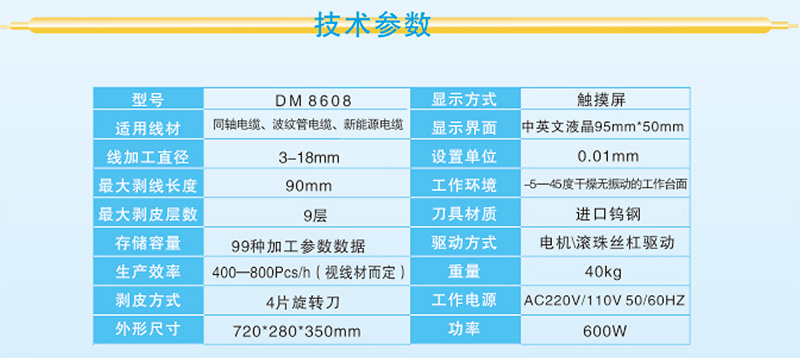 1.適用于通訊行業及醫療汽車行業各類柔性及半柔性同軸線、充電樁電纜、醫療線等剝線剝口整齊,精密不傷及導體。