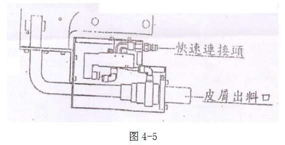 1.將附件之廢料口袋安裝于剝皮系統(tǒng)后部皮屑出料口,如圖4-5。
