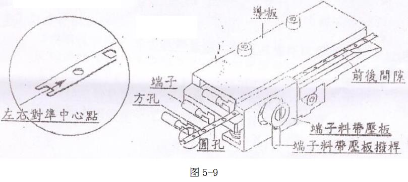 2.導板的安裝須使端子左右活動靈活,前后間隙不能太大,才能使送料順暢,如圖5-9。